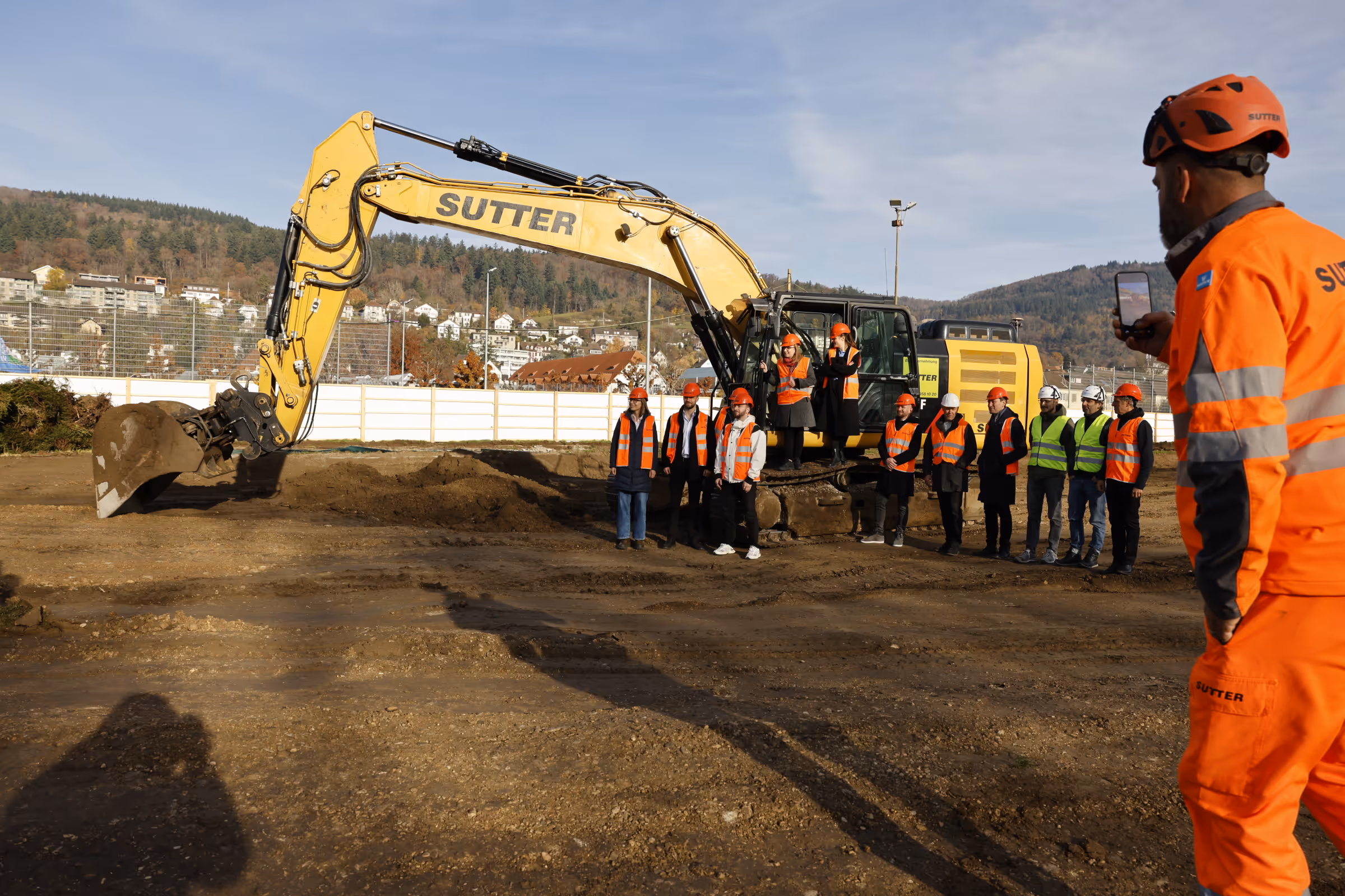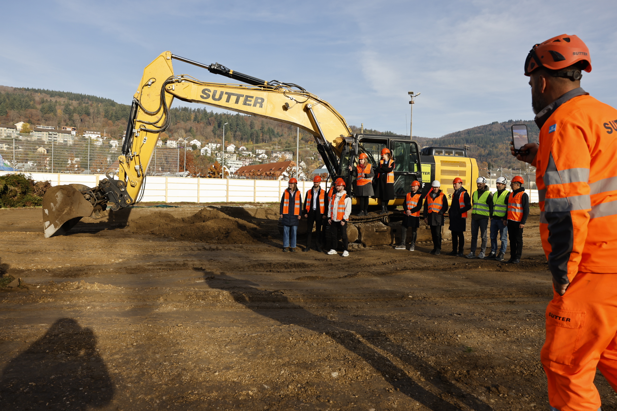 Politik trifft auf PSGemeinderätin Lena Frank (Direktorin Bau, Energie und Umwelt) und Gemeinderätin Anna Tanner (Direktorin Schule, Kultur und Sport) liessen es sich nicht nehmen, den Baustart persönlich einzuläuten. Unter der fachkundigen Anleitung unseres erfahrenen Maschinisten Jeton übernahmen sie das Steuer unseres 20-Tonnen-Baggers.