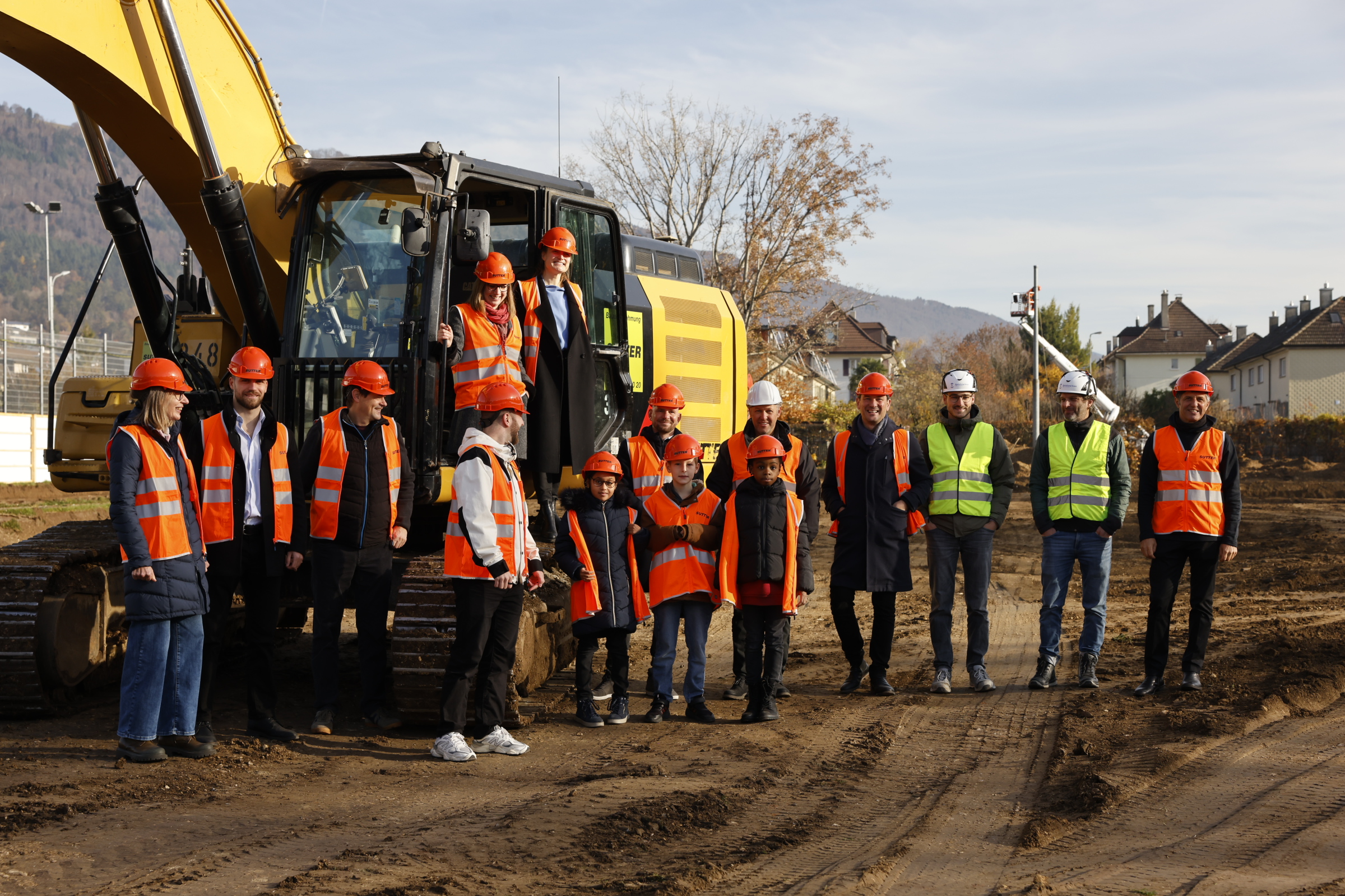 Spatenstich Schulhaus Champagne: Bagger-Power mit Lena Frank