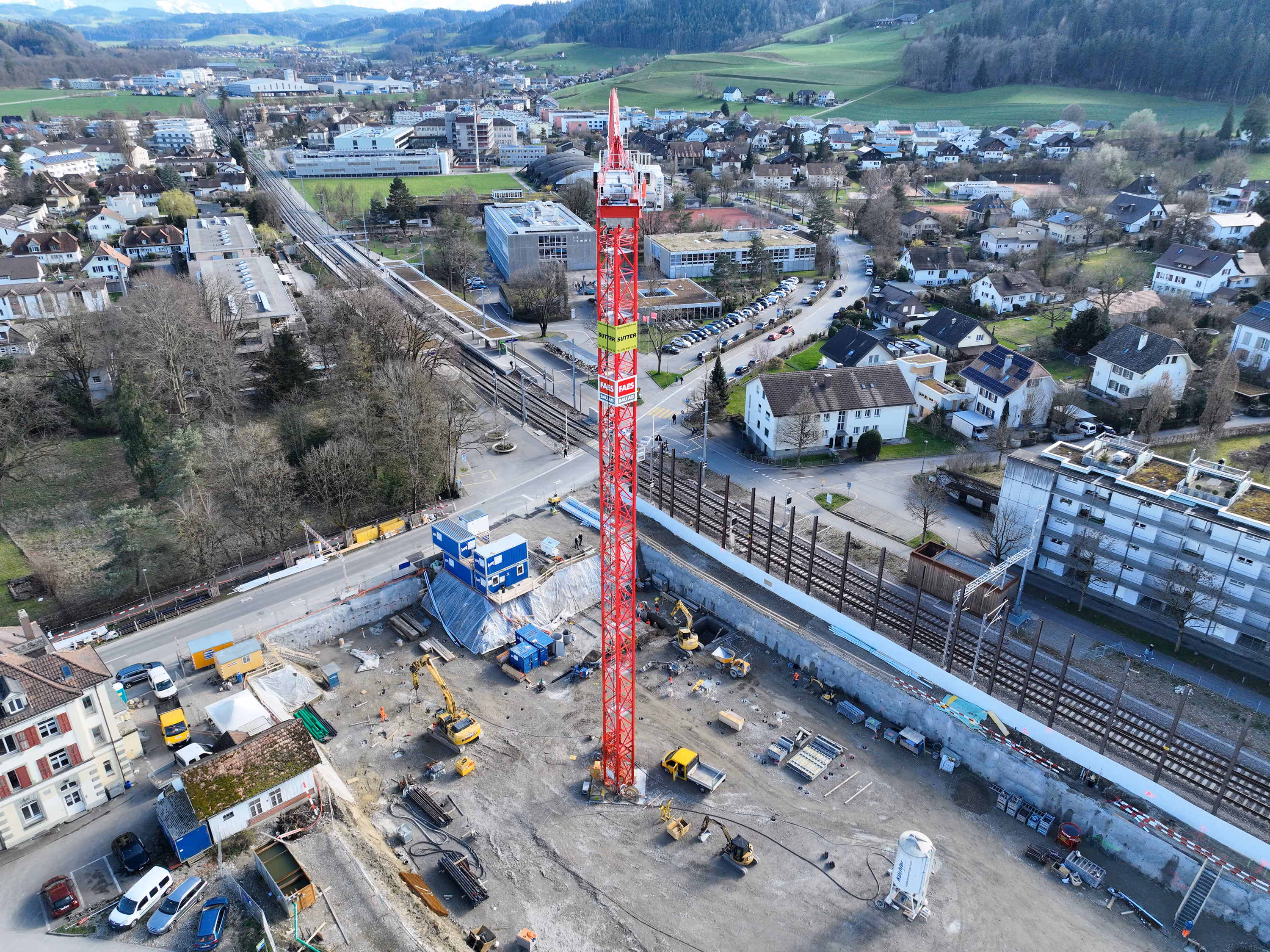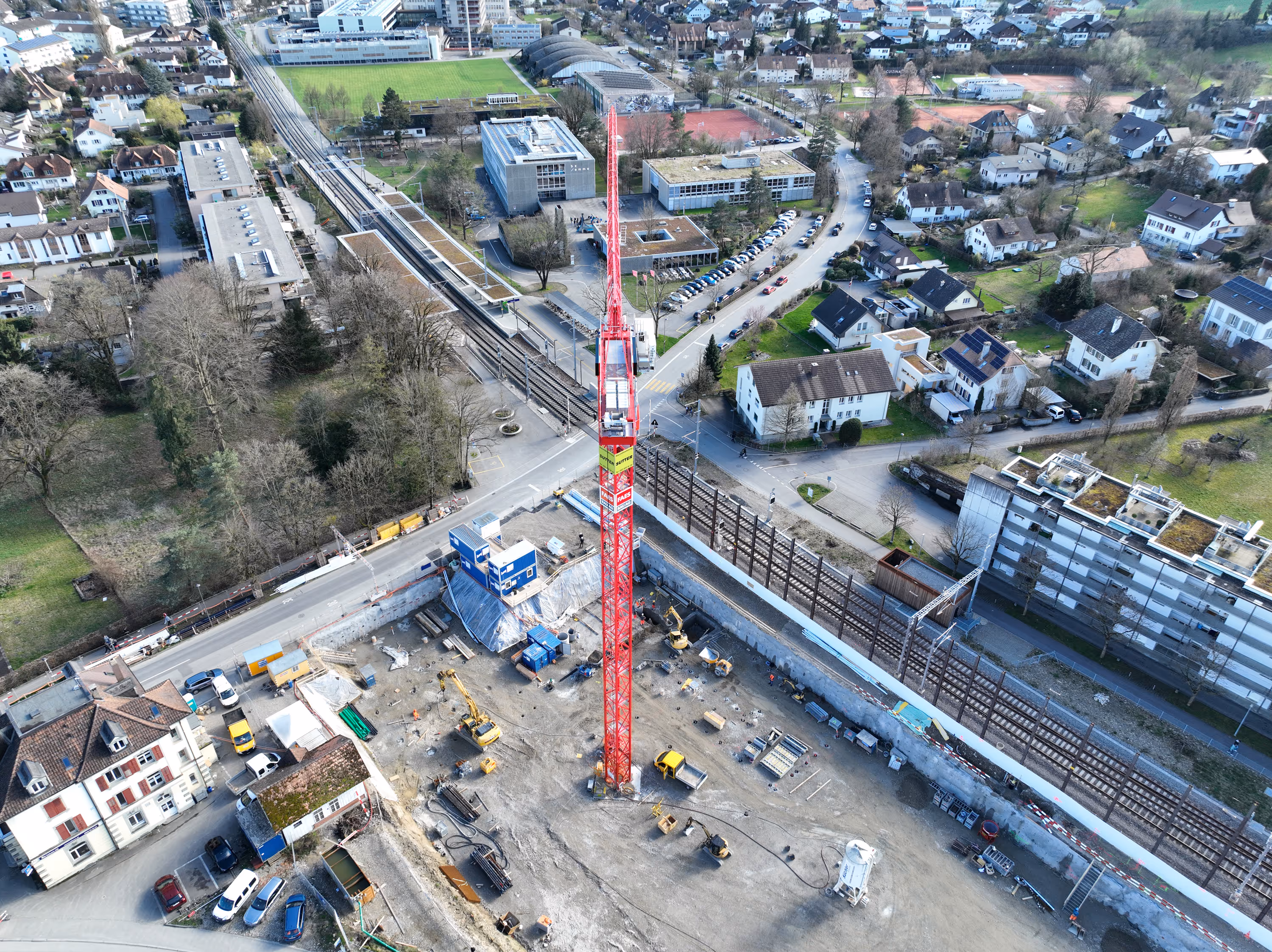 Das ist unser neuer Turmdrehkran. Seine Premiere gibt er für das Projekt Q34 an der Bernstrasse 67 – 71 in Burgdorf (Steinhof)