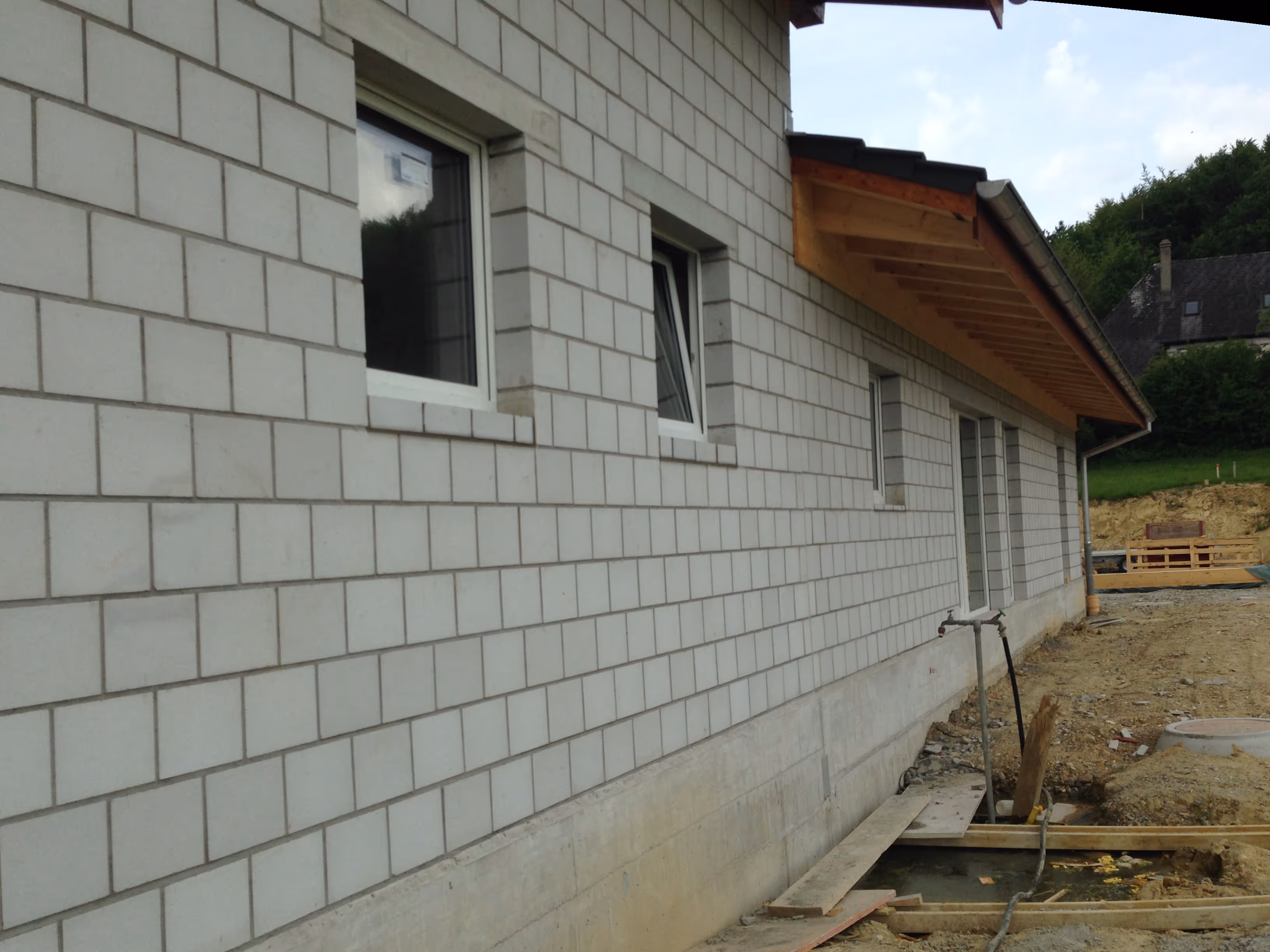 Aushub und Bodenverbesserung, Bohrpfähle, Sichtbeton, Sichtmauerwerk