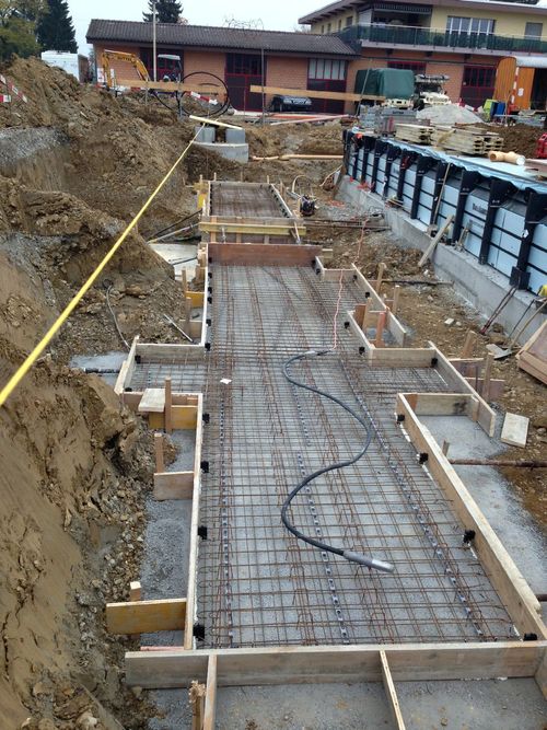 Beihilfe beim Einbau von zwei über 20m langen Stahlgruben: Erstellen der Fundamente, Beihilfe beim Einbau, untergiessen der Stahlgruben.