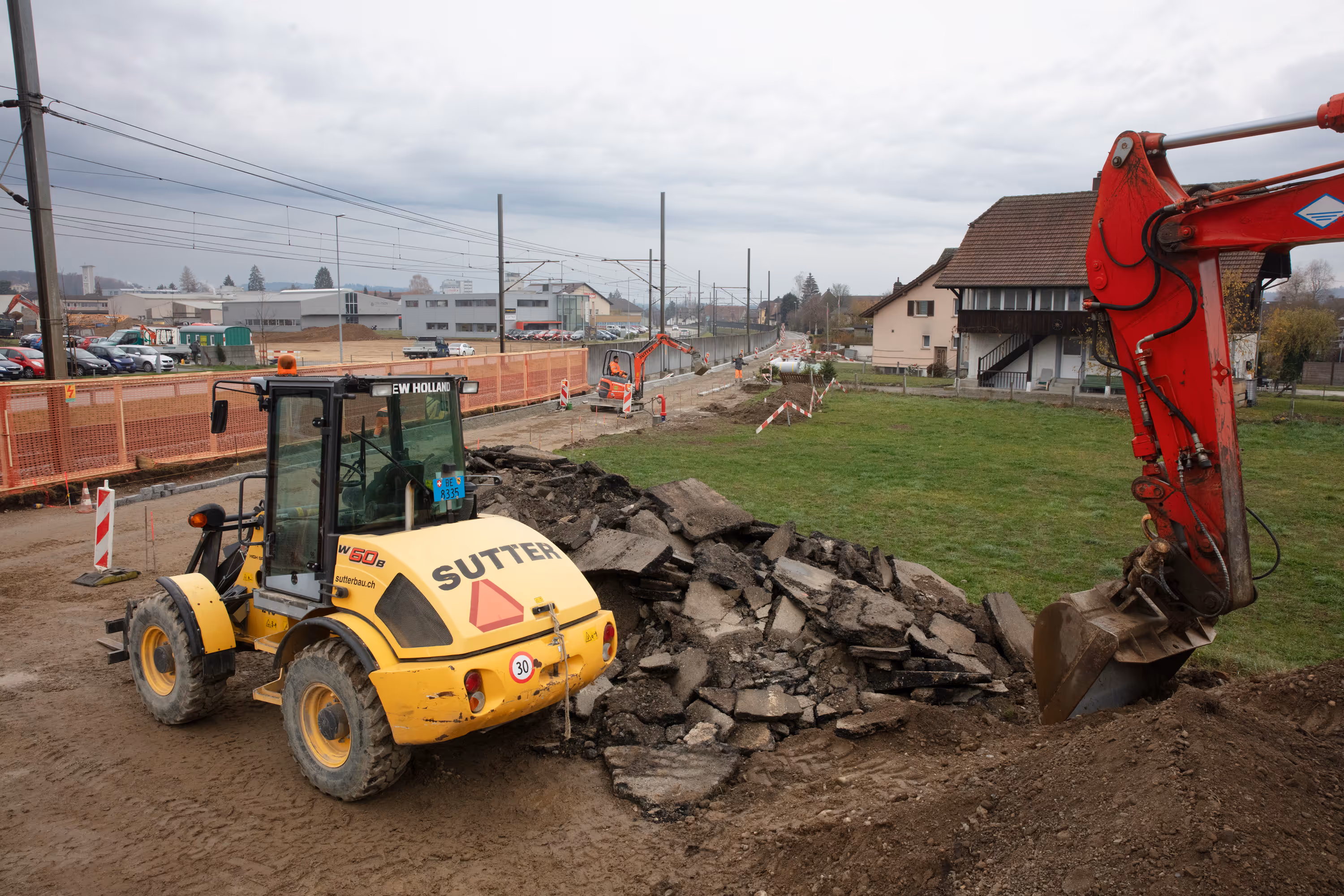 Leitungssanierungen mit Spriessungen, bis 5m unter Oberfläche, enge Verhältnisse in belebtem Quartier. Angrenzende Bahnline (SBB Sicherheitskonzept). Inkl. Strassensanierung.