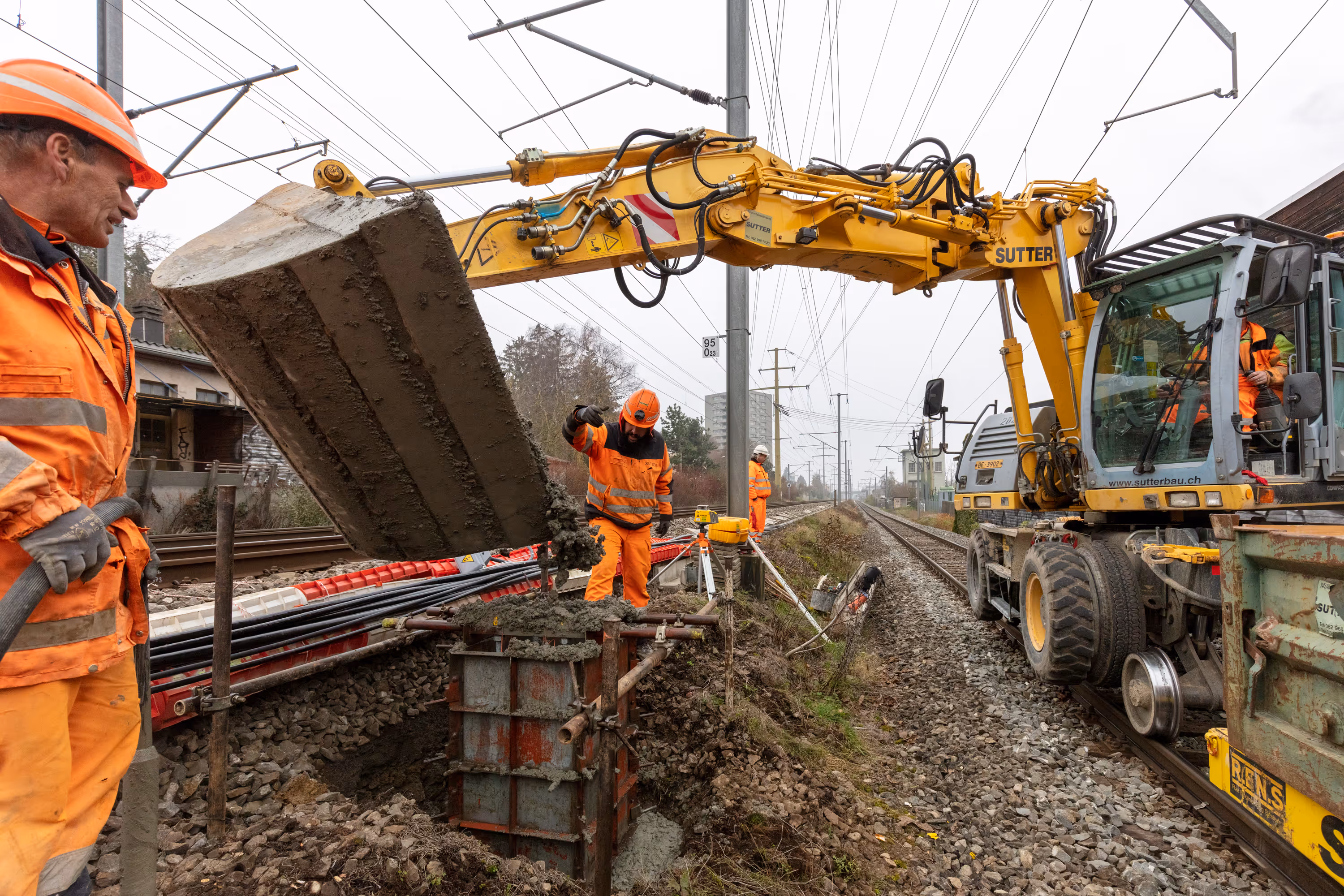 Alle Zweiwegebagger sind mit Hub- und Schwenkbegrenzung ausgestattet und auf Standsicherheit im Gleisbetrieb überprüft. Die Maschinenführer absolvierten Weiterbildungskurse mit Schwerpunkt Sicherheit (SBV). Für jedes Projekt werden Sicherheitskonzepte mit der Bauleitung erarbeitet.